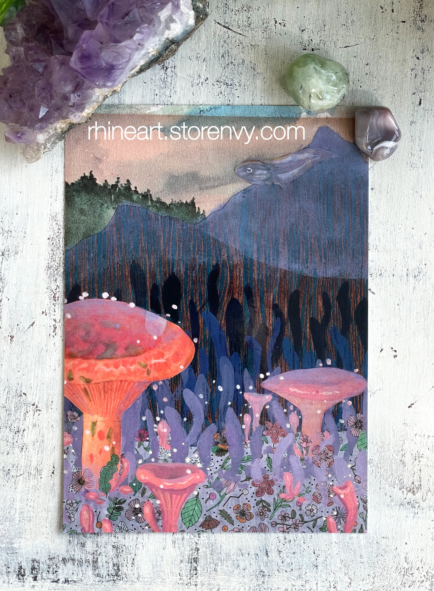 This vibrant postcard makes a great gift, or display it right at home or at the office! Can be used to write sentiments or framed as a print. Beautiful rich colors and glossy finish. Back of the card has uncoated texture for writing, and is blank except for a small gray logo and website at the bottom.