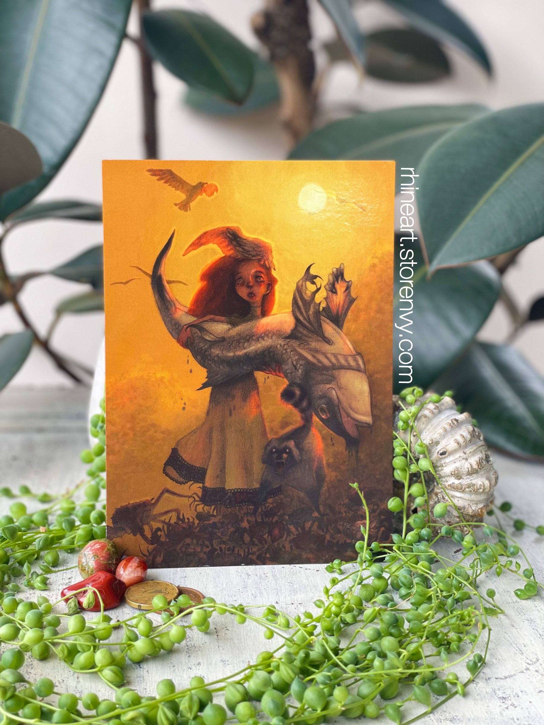 This vibrant postcard makes a great gift, or display it right at home or at the office! Can be used to write sentiments or framed as a print. Beautiful rich colors and glossy finish. Back of the card has uncoated texture for writing, and is blank except for a small gray logo and website at the bottom.
