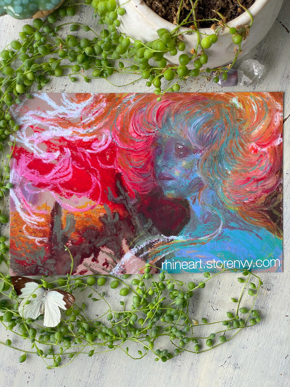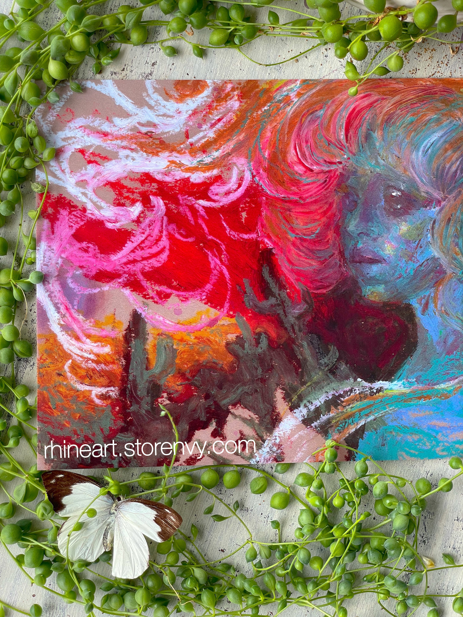 This large vibrant postcard makes a great gift, or display it right at home or at the office! Can be used to write sentiments or framed as a print. Beautiful rich colors and glossy finish. Back of the card has uncoated texture for writing, and is blank except for a small gray logo and website at the bottom.