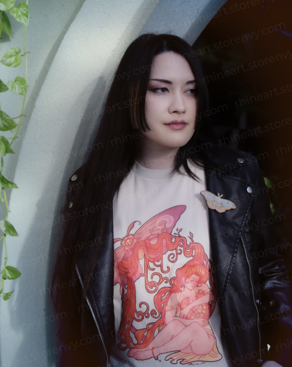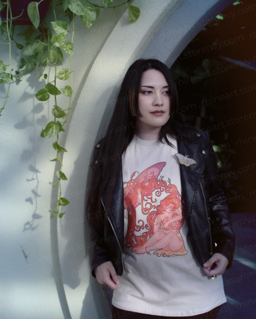 This stunning unisex t-shirt features a bold and beautiful art nouveau style illustration. T-shirt sizes run just slightly big and are longer than average, making them super comfy. This is the tan variant of the shirt- please note colors may look slightly different in the photos than they appear in real life.