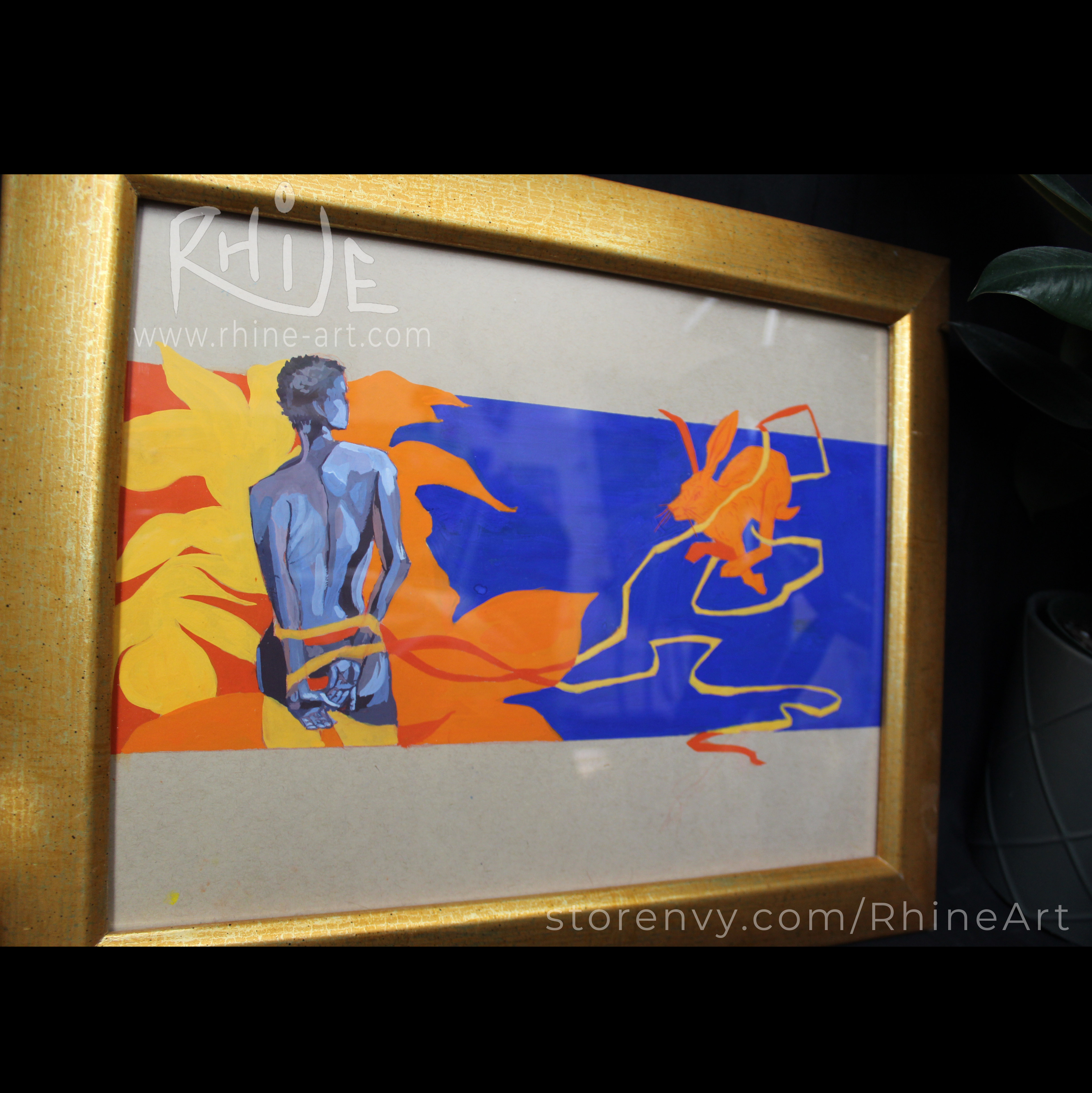 Original gouache painting in a repurposed golden frame. Beautiful and vibrant, one of a kind painting makes for great home decor or a personal gift.