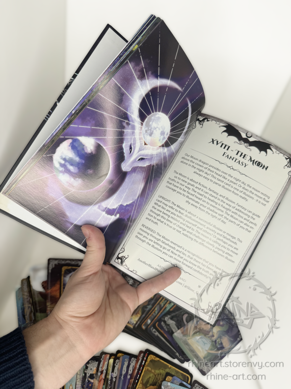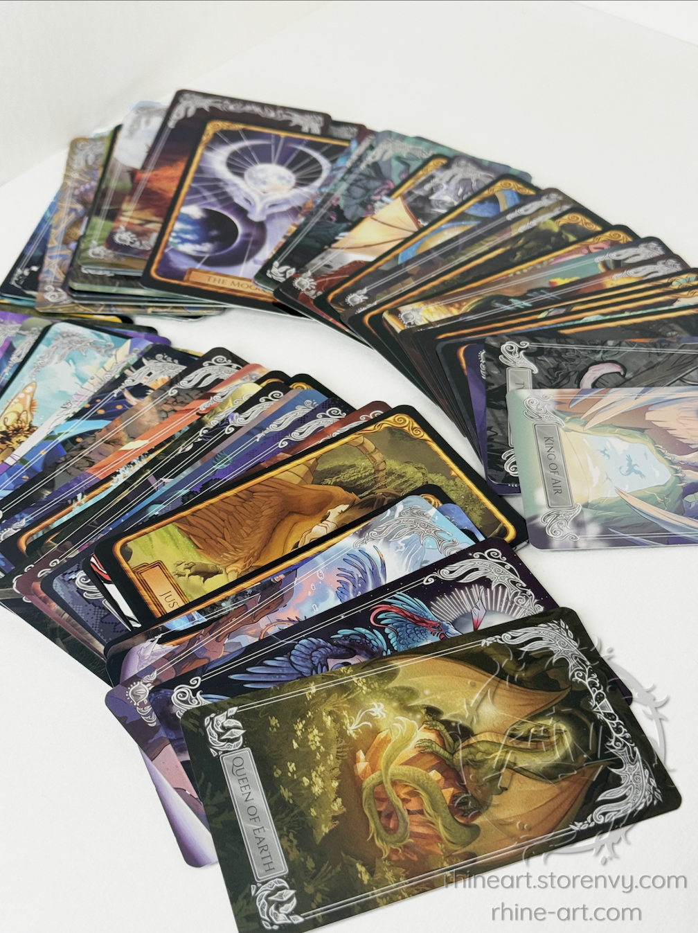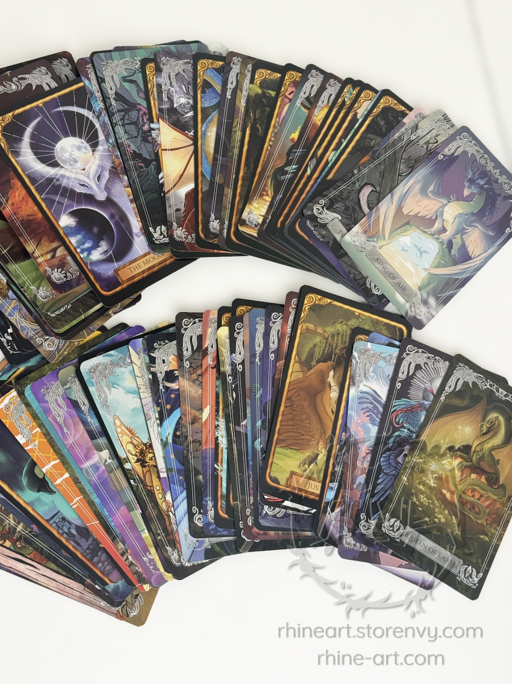 This deck was led by a tarot team with more than 45 years combined tarot practice and illustrated by 75+ artists from around the world. We came together through our shared love of all things draconic and each artist brought their own imagination and artistic expression to their cards.